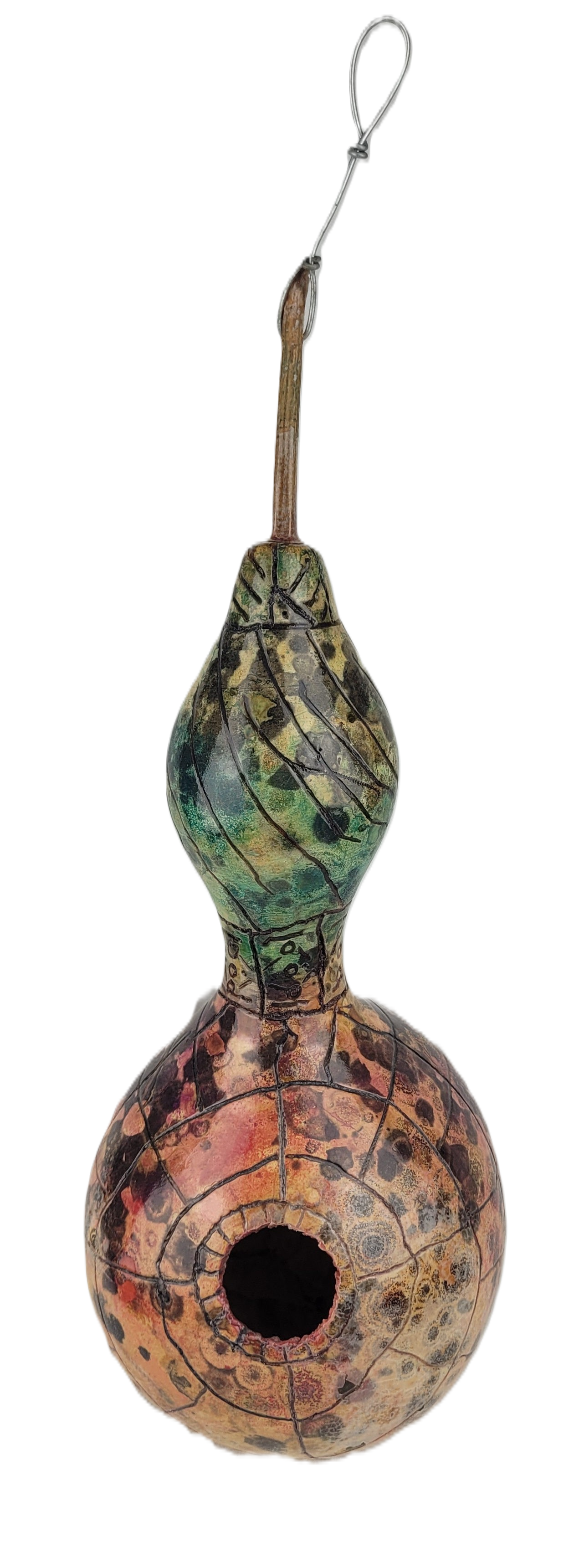 Wood Burn and Watercolor Gourd Birdhouse